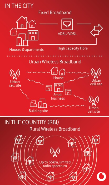 • In rural areas, we use long-range radio spectrum that can travel up to 35kms to connect homes in the area, mostly via 4G. Usually this has more than enough capacity to service country communities, but at peak times these sites are more likely to get congested.