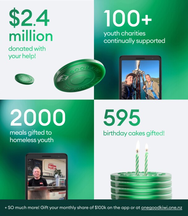 With 3.7 million tokens distributed and 50,000 active users each month, it's clear that New Zealanders are eager to make a difference. As One Good Kiwi enters its third year, the app continues to democratise philanthropy by helping charities that once struggled for visibility and consistent support.