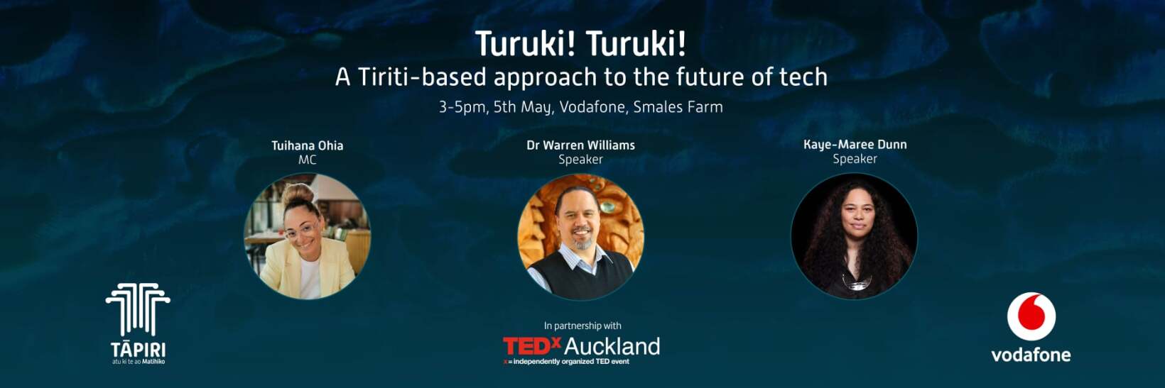Vodafone and TEDxAuckland are partnering to deliver a kaupapa Māori focused event this afternoon at Vodafone’s Auckland headquarters in Takapuna, entitled ‘Turuki! Turuki! A Tiriti-based approach to the future of tech’.